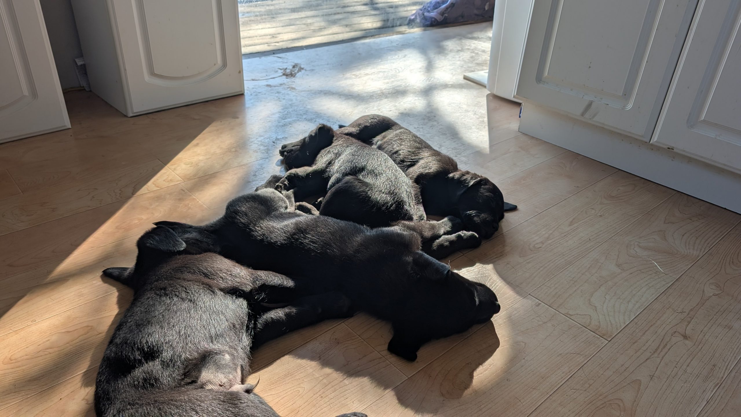 Meet the Black Lab Puppies! They are 10 weeks old, 3 females, 1 male. They arrived at rescue after an accidental liter. They have been well-taken care of and have started their vaccination series.