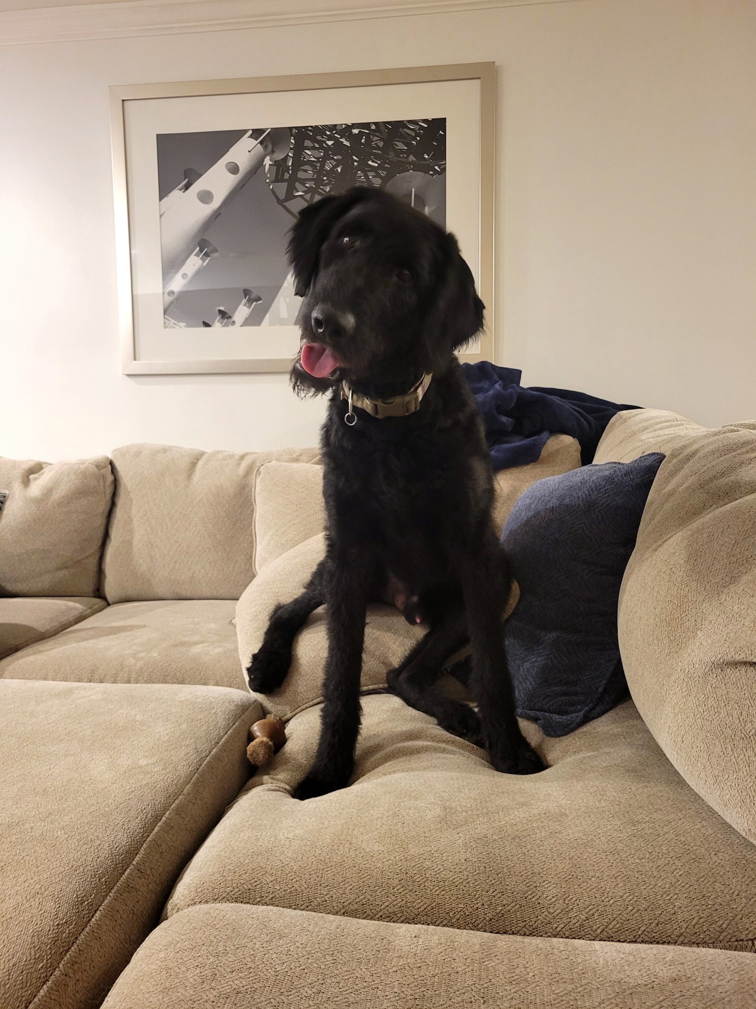 Meet Bohdi! He is a 1 year old, 75lb doodle. He was recently adopted by a family with small children and returned.