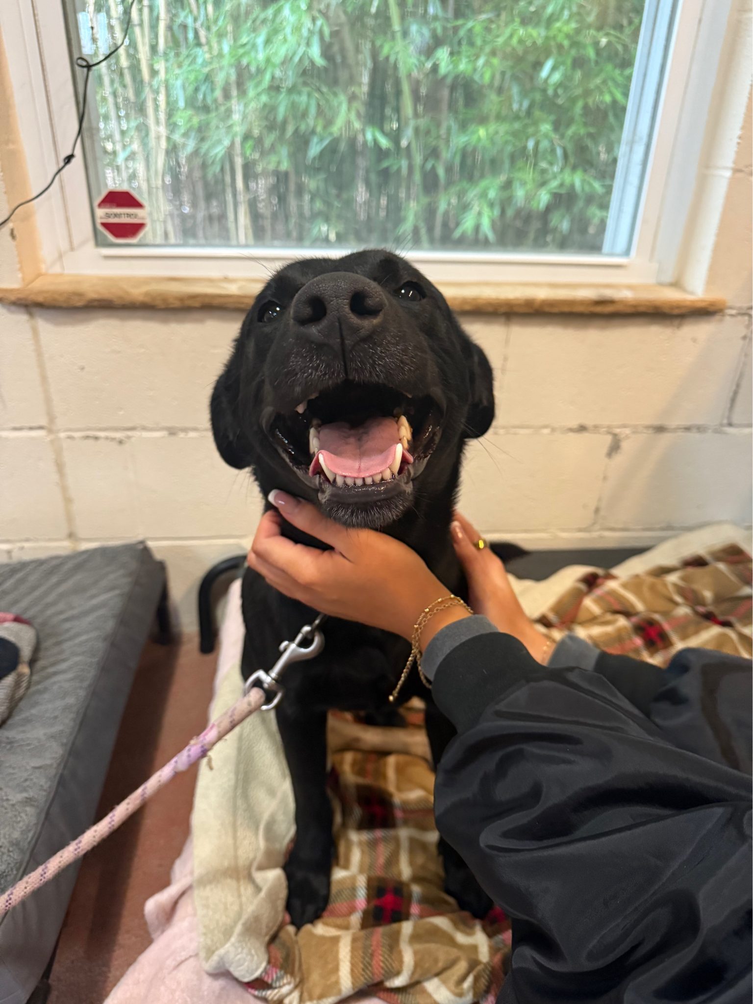 Meet Cocoa! She is a 1 year old, 54lb black lab mix that was surrendered by her owner after they no longer had time for her.