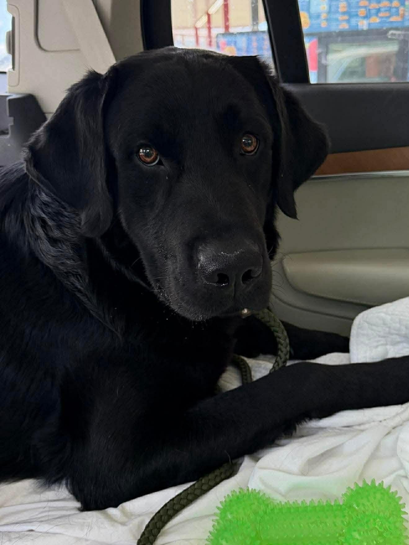Meet Smudge! He is a 2 year old, 100lb black lab that was found stray in Mississippi.