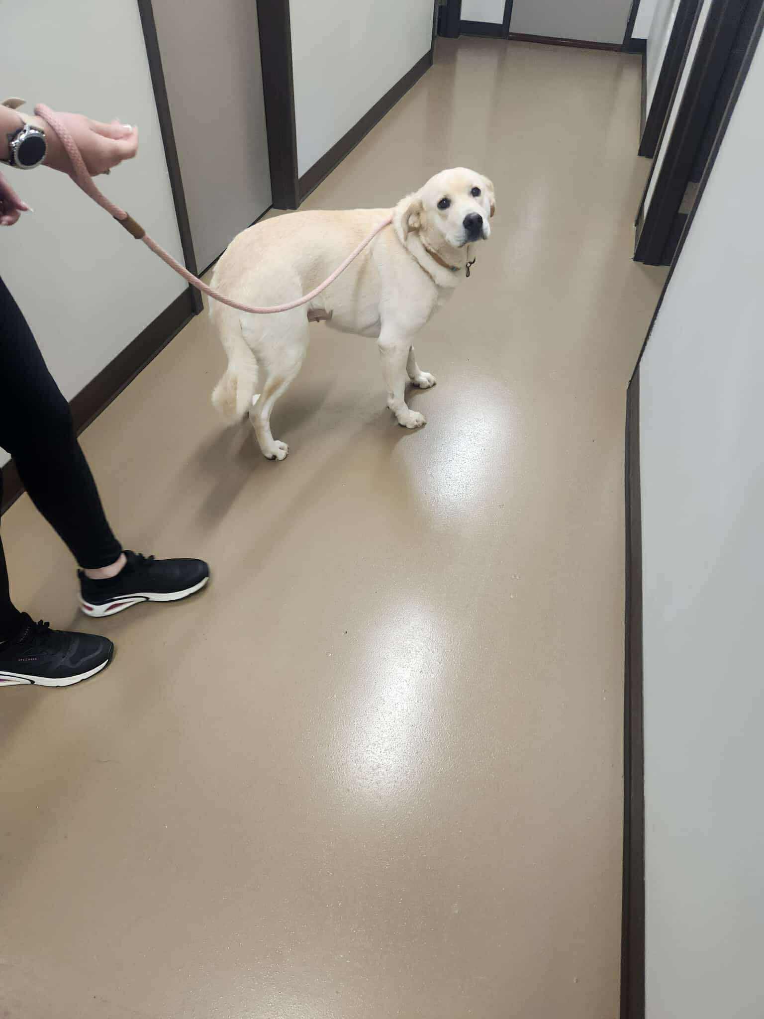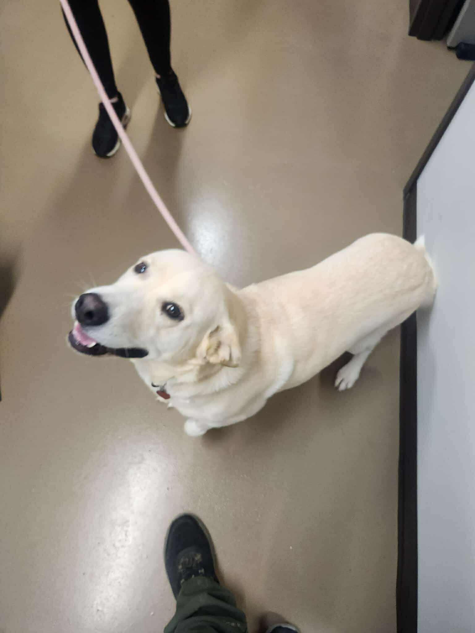 Personality:  Daisy is a beautiful yellow Lab and an absolute shelter favorite! She has a warm, gentle personality that wins over everyone she meets. Daisy loves people and gets along great with other dogs, making her the perfect companion for just about any home. Her friendly nature and happy spirit shine through in everything she does.