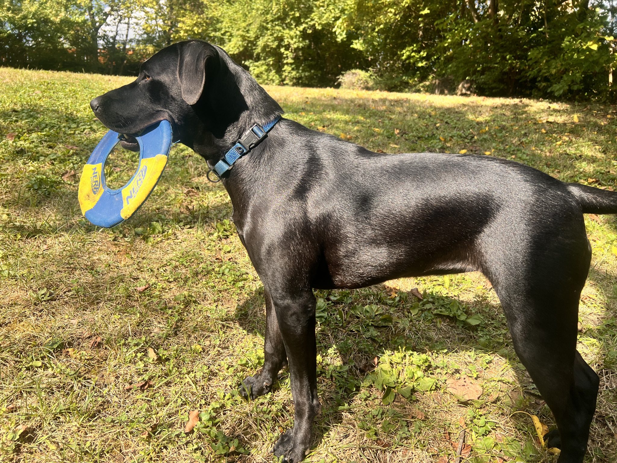 She does have a silly streak—like collecting personal items if she can, digging holes in the yard, or chasing squirrels—but with supervision, enrichment, and ongoing training, she channels her energy into positive outlets. She even had her first swim recently and did great, bravely chasing a toy in the water!