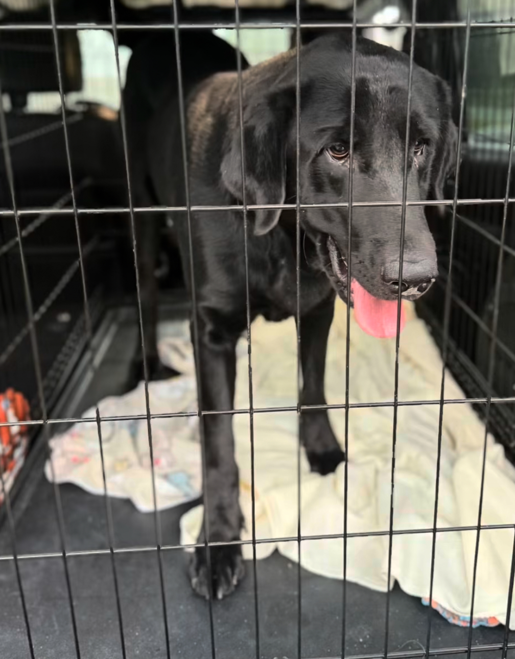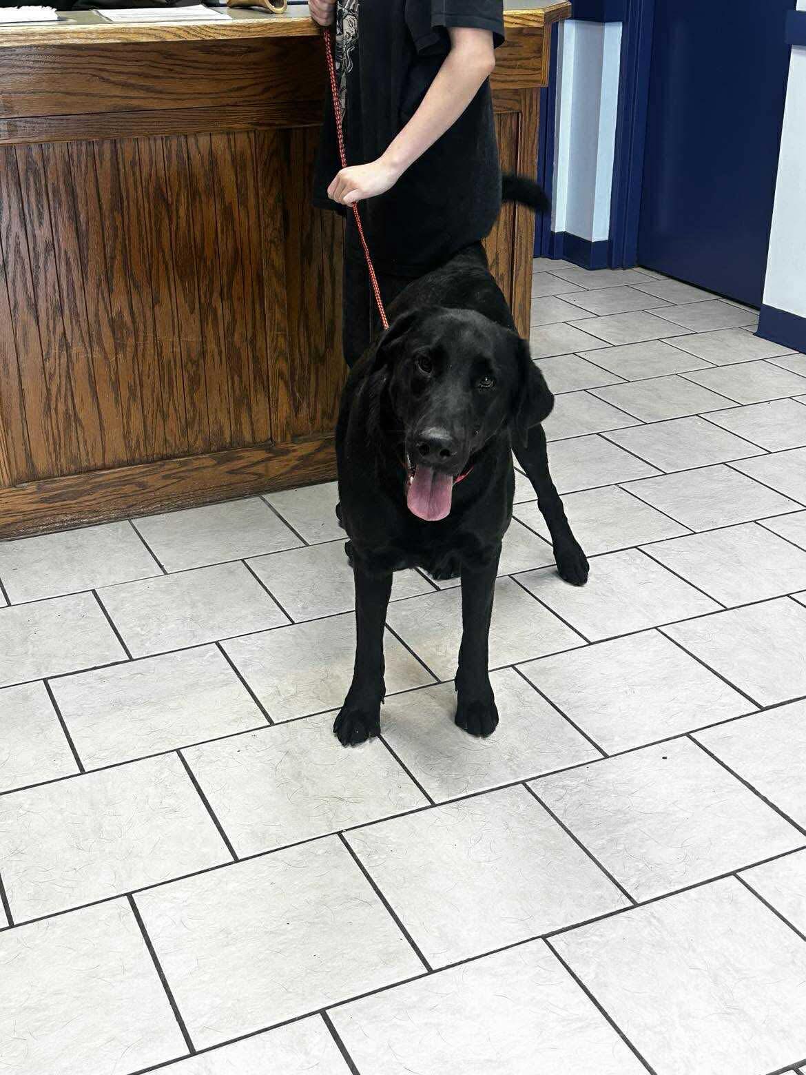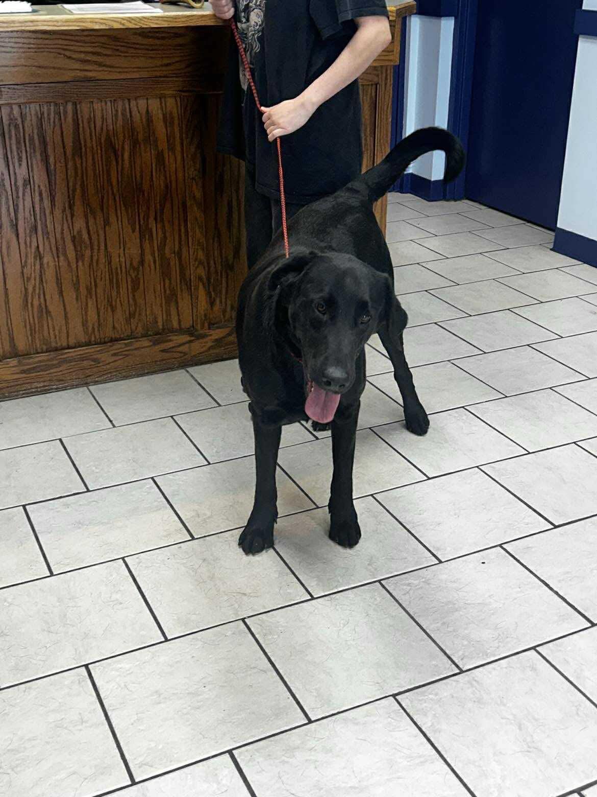 Meet Knight! He is a 105lb black lab that was found as a stray. He was adopted by a family but had to be returned after they became a caretaker for their 98 year old grandmother.
